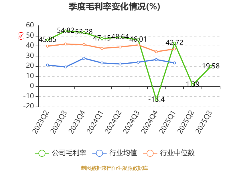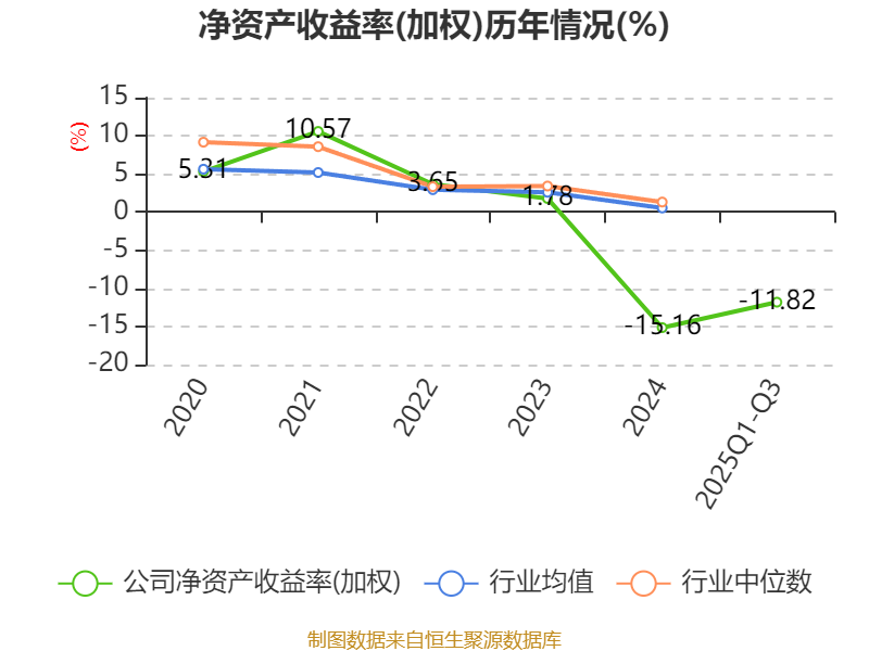 盈利能力方面, 2025年前三季度公司加权平均净资产收益率为-11.82%,同比下降9.53个百分点。公司2025年前三季度投入资本回报率为-10.81%,较上年同期下降7.38个百分点。