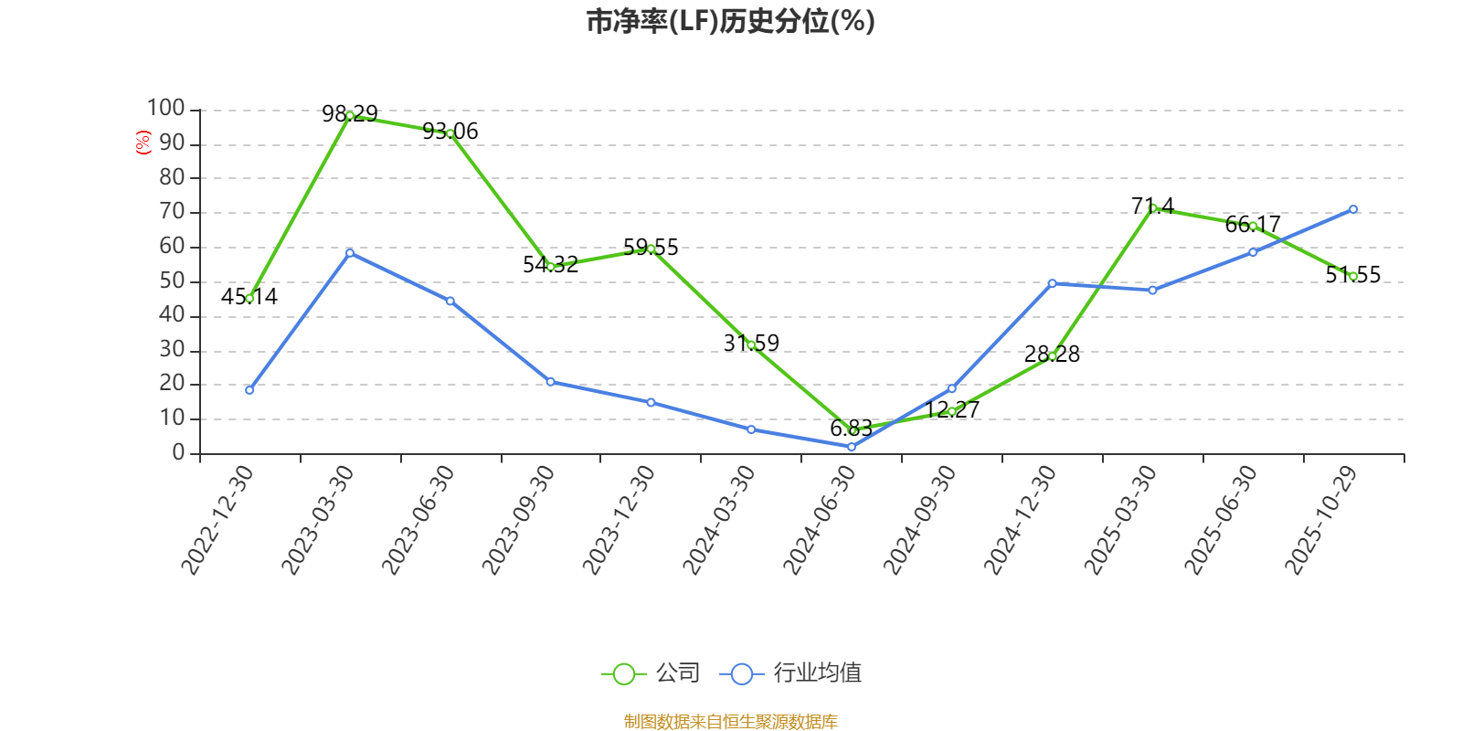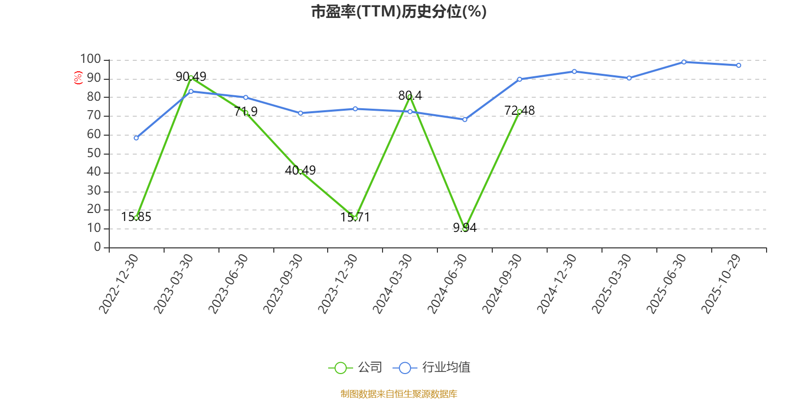 市盈率、市净率为负时,不显示当期分位数,会导致折线图中断。