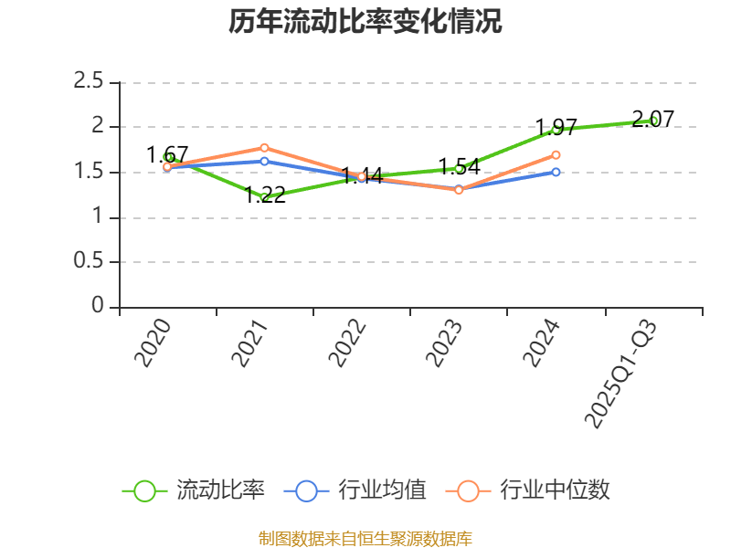 2025年前三季度,公司流动比率为2.07,速动比率为1.63。