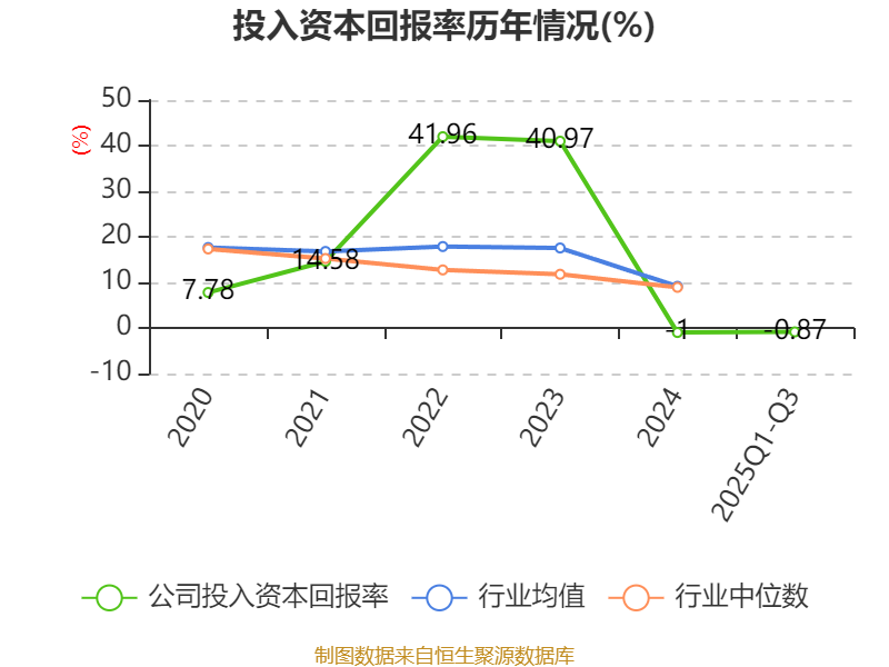 盈利能力方面, 2025年前三季度公司加权平均净资产收益率为-2.23%,同比下降7.18个百分点。公司2025年前三季度投入资本回报率为-0.87%,较上年同期下降5.74个百分点。