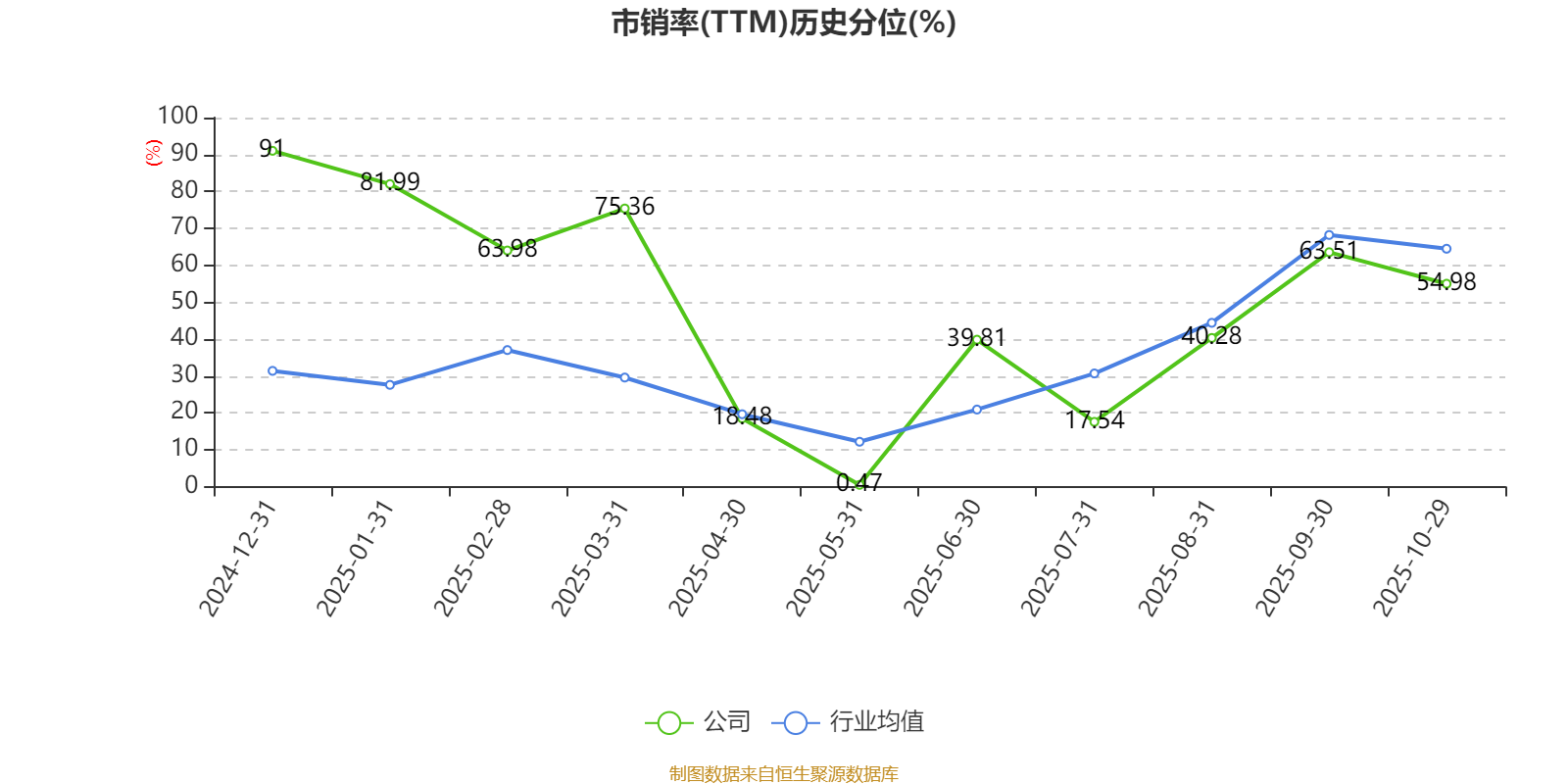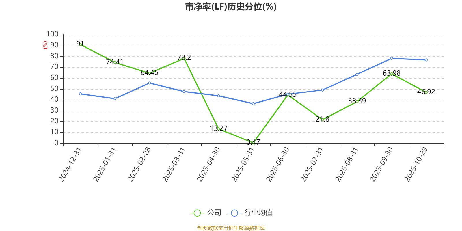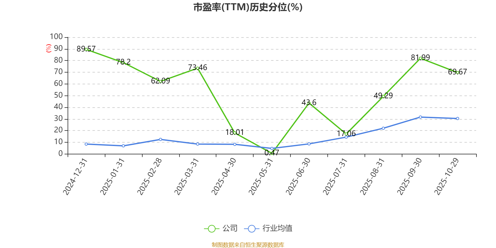 市盈率、市净率为负时,不显示当期分位数,会导致折线图中断。