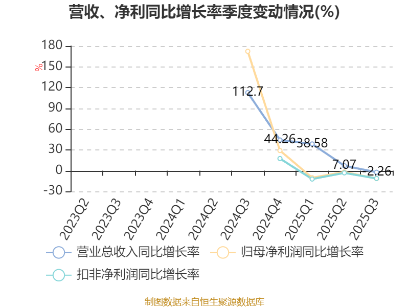 资产重大变化方面,截至2025年三季度末,公司货币资金较上年末减少7.03%,占公司总资产比重下降5.89个百分点;在建工程合计较上年末增加198.47%,占公司总资产比重上升5.32个百分点;固定资产较上年末增加19.43%,占公司总资产比重上升1.31个百分点;其他非流动资产较上年末减少74.98%,占公司总资产比重下降0.98个百分点。