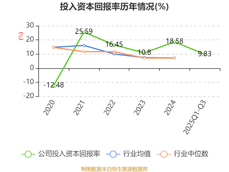 盈利能力方面, 2025年前三季度公司加权平均净资产收益率为10.47%,同比下降10.53个百分点。公司2025年前三季度投入资本回报率为9.83%,较上年同期下降10.15个百分点。