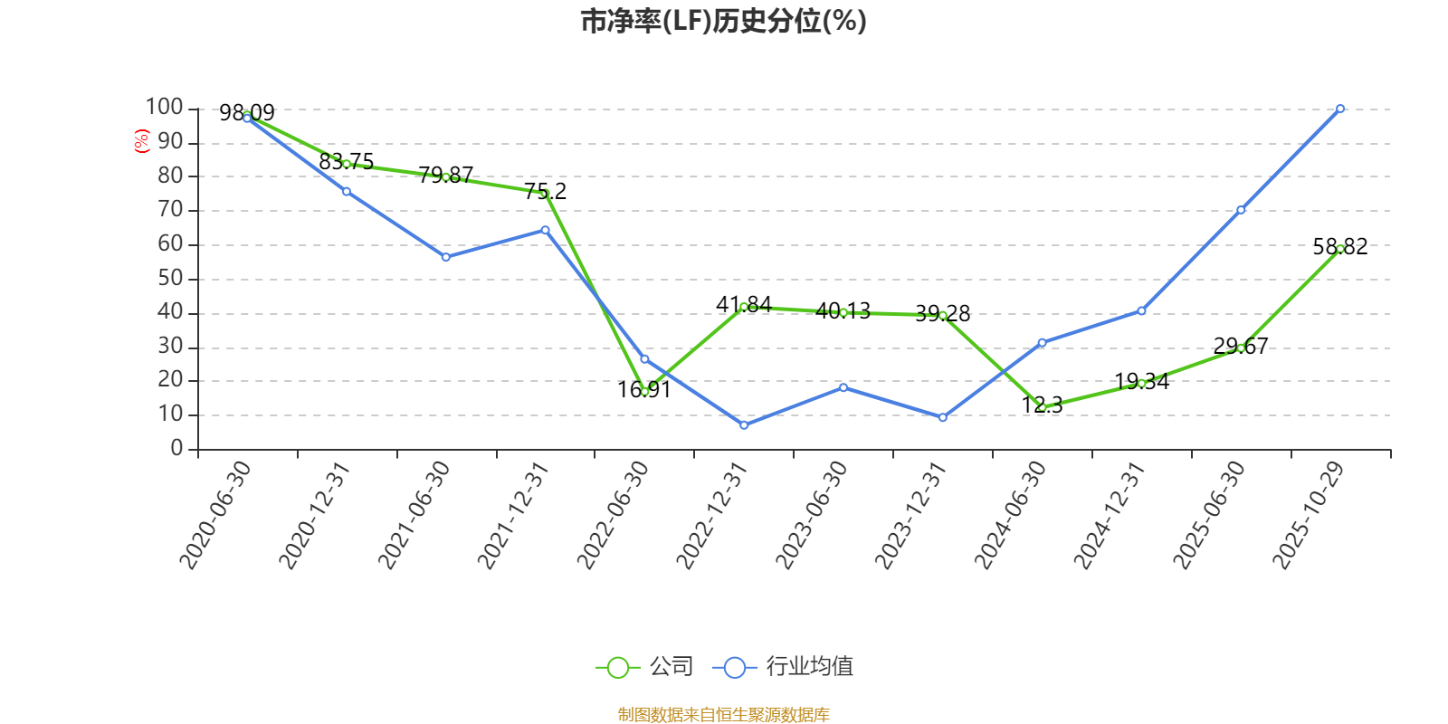 市盈率、市净率为负时,不显示当期分位数,会导致折线图中断。