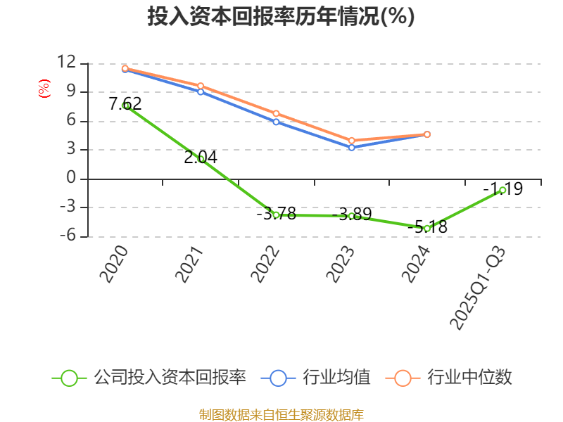 盈利能力方面, 2025年前三季度公司加权平均净资产收益率为-1.89%,同比上升0.83个百分点。公司2025年前三季度投入资本回报率为-1.19%,较上年同期上升1.04个百分点。