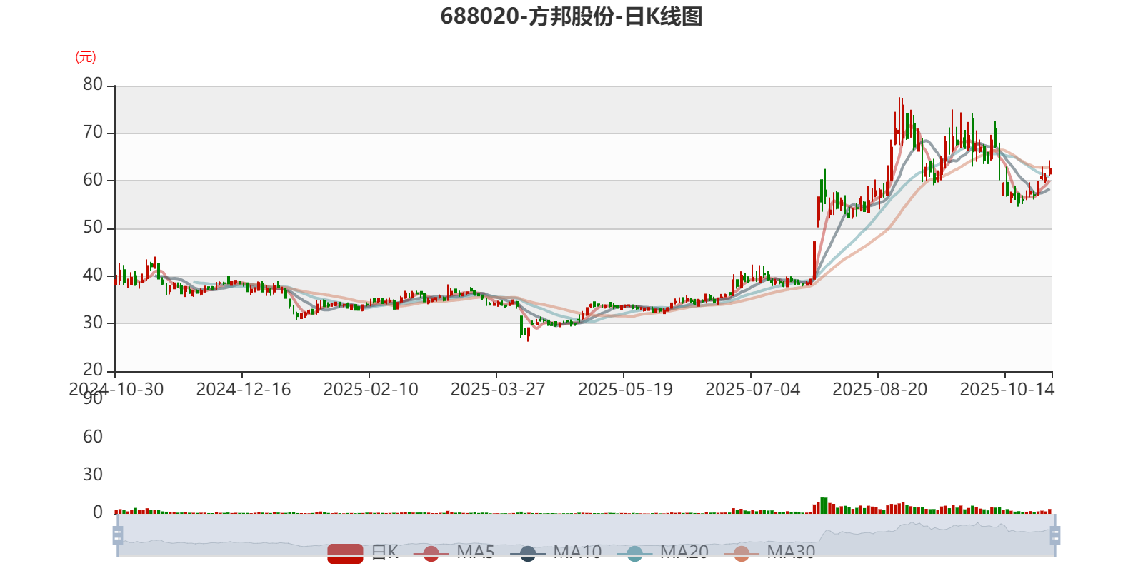 以10月29日收盘价计算,方邦股份目前市盈率(TTM)约为-65.44倍,市净率(LF)约3.72倍,市销率(TTM)约13.87倍。