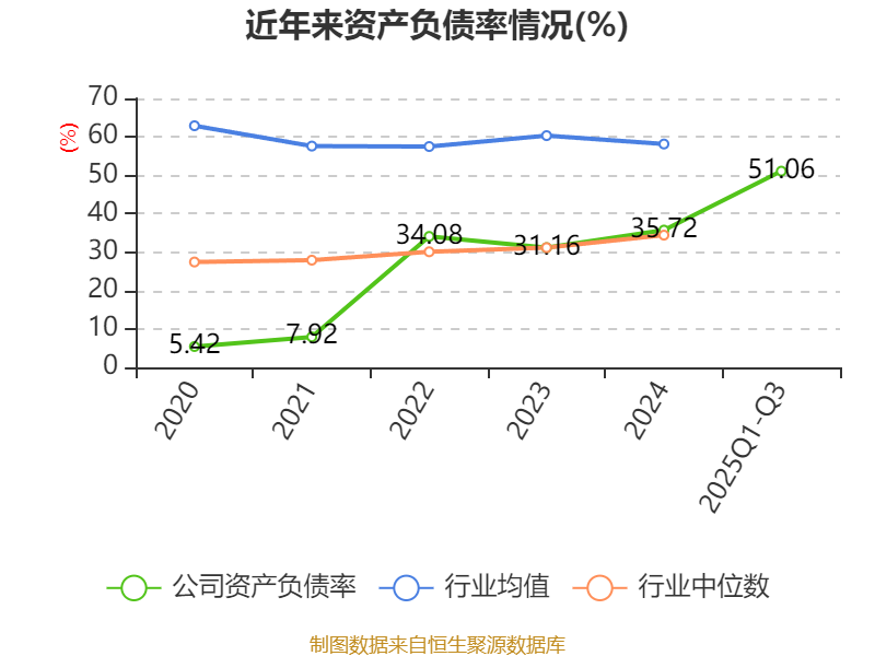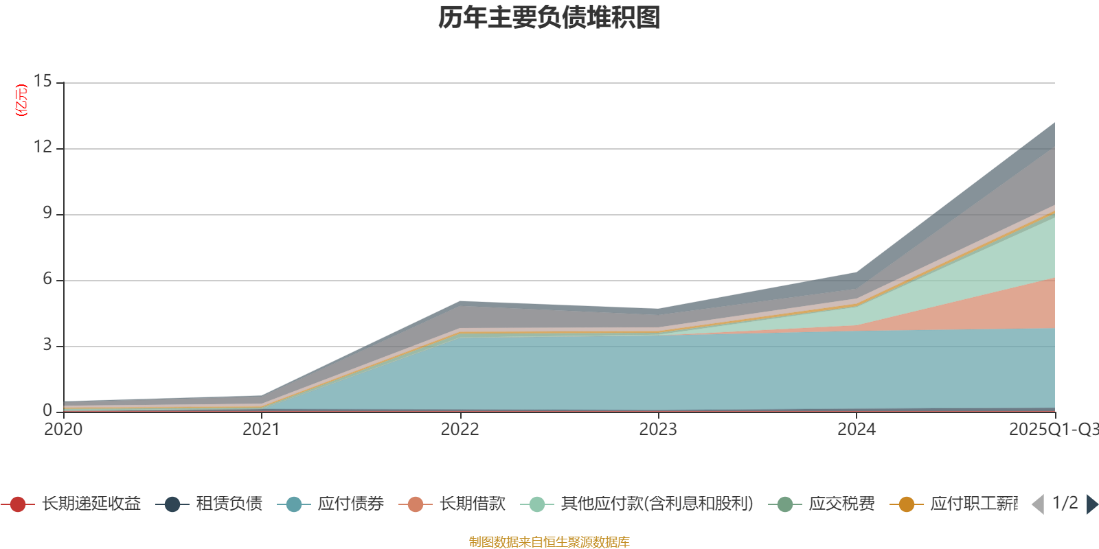 负债重大变化方面,截至2025年三季度末,公司应付票据及应付账款较上年末增加506.49%,占公司总资产比重上升7.86个百分点;长期借款较上年末增加798.73%,占公司总资产比重上升7.49个百分点;其他应付款(含利息和股利)较上年末增加230.46%,占公司总资产比重上升5.94个百分点;应付债券较上年末增加2.64%,占公司总资产比重下降5.82个百分点。