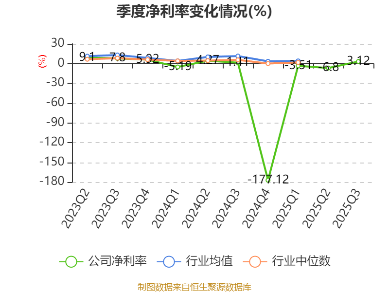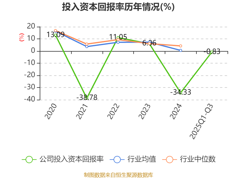 盈利能力方面, 2025年前三季度公司加权平均净资产收益率为-0.8%,同比下降1.41个百分点。公司2025年前三季度投入资本回报率为-0.83%,较上年同期下降1.19个百分点。