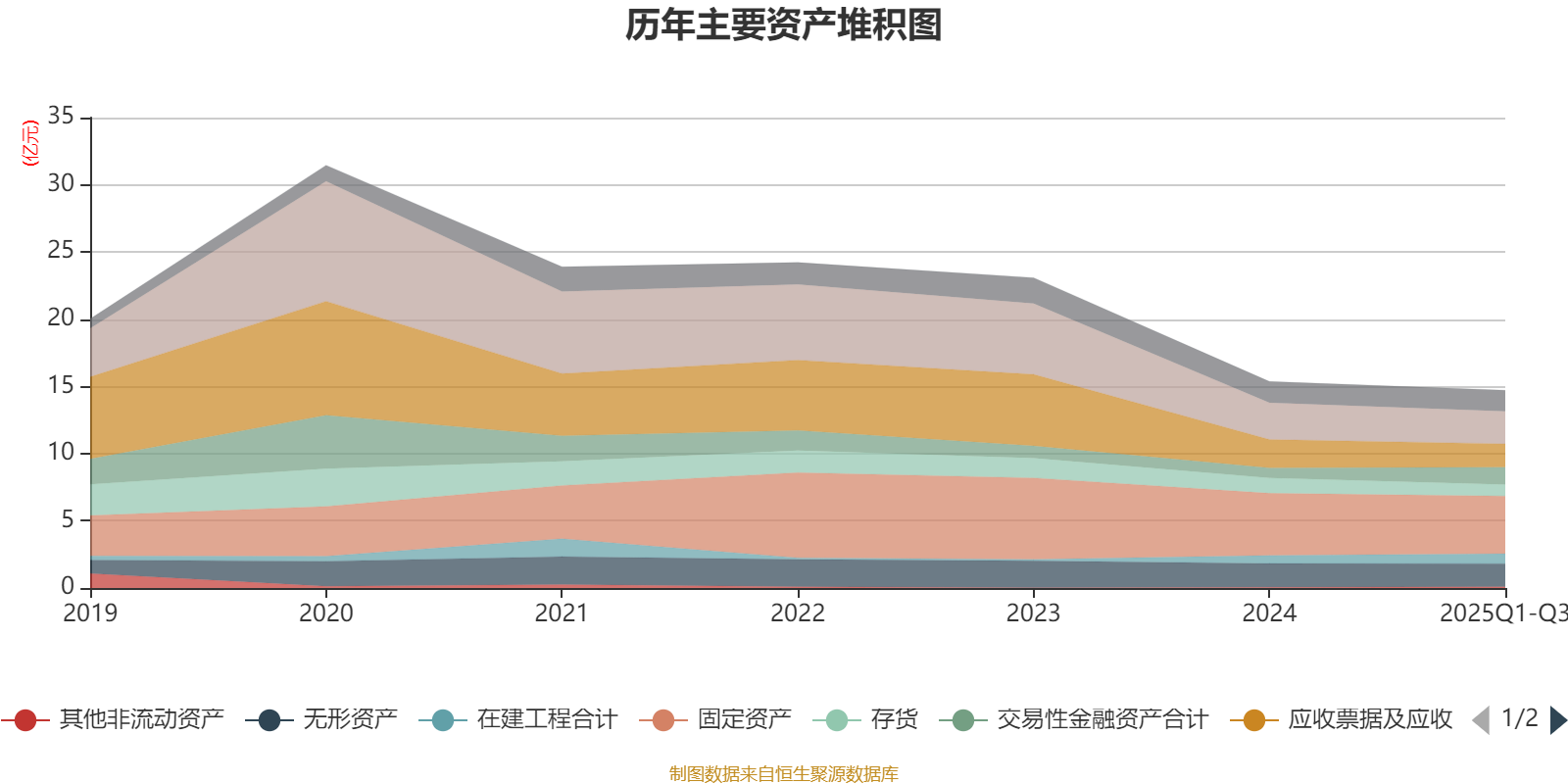 资产重大变化方面,截至2025年三季度末,公司交易性金融资产合计较上年末增加70.59%,占公司总资产比重上升3.85个百分点;应收票据及应收账款较上年末减少17.08%,占公司总资产比重下降1.84个百分点;存货较上年末减少25.03%,占公司总资产比重下降1.6个百分点;长期股权投资较上年末减少100%,占公司总资产比重下降1.35个百分点。