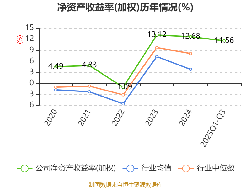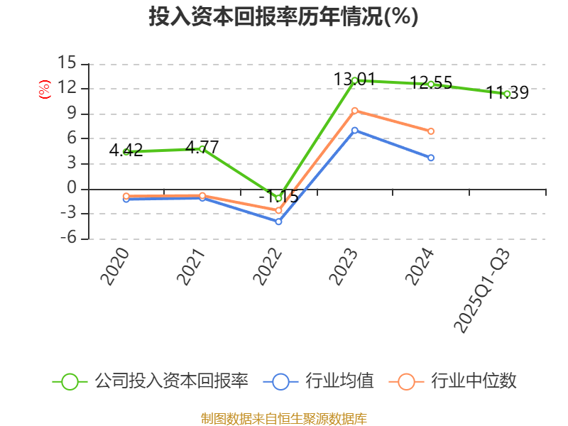 盈利能力方面, 2025年前三季度公司加权平均净资产收益率为11.56%,同比上升1.08个百分点。公司2025年前三季度投入资本回报率为11.39%,较上年同期上升0.9个百分点。