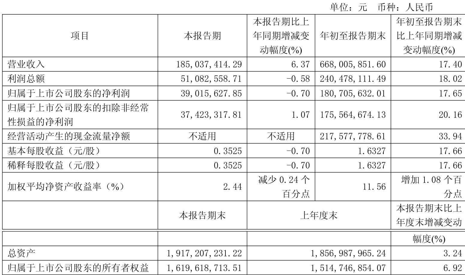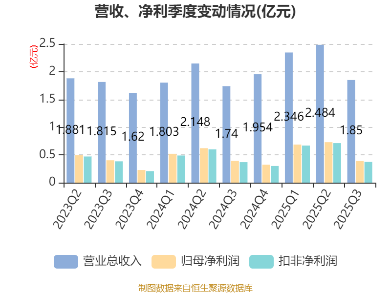 2025年前三季度,公司流动比率为2.41,速动比率为2.38。