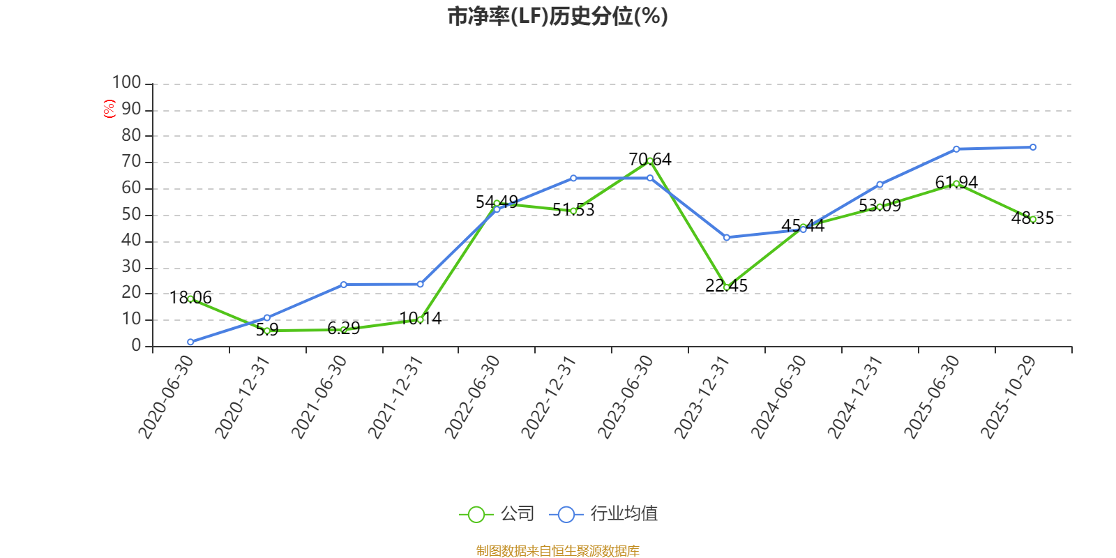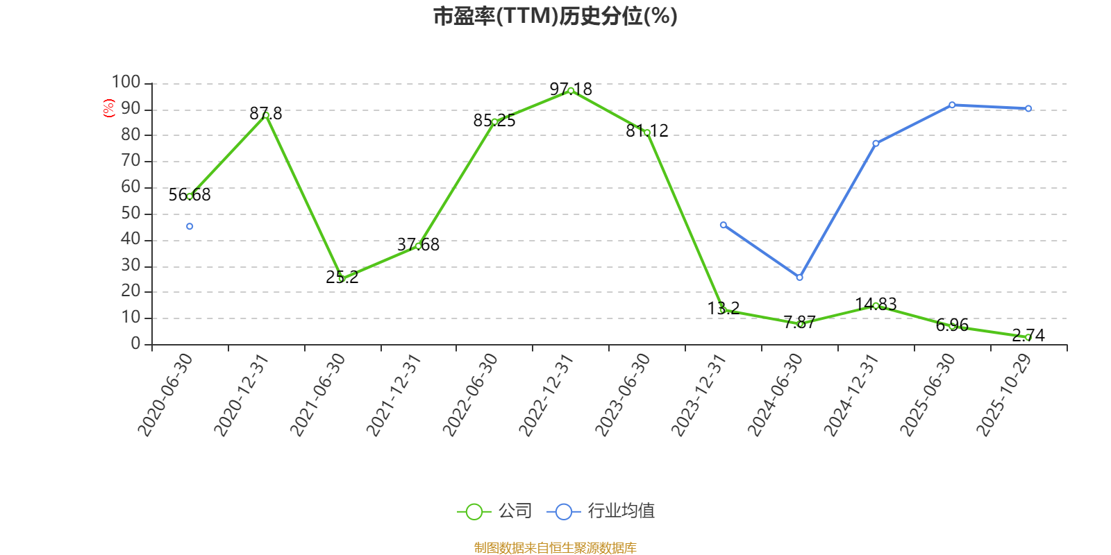市盈率、市净率为负时,不显示当期分位数,会导致折线图中断。