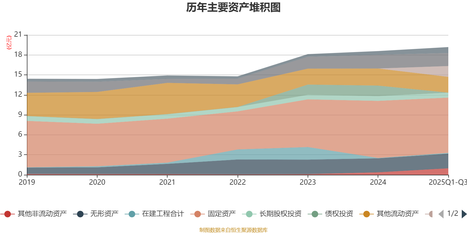 资产重大变化方面,截至2025年三季度末,公司债权投资较上年末减少100%,占公司总资产比重下降8.55个百分点;一年内到期的非流动资产占公司总资产的8.46%,上年末为0;其他非流动资产较上年末增加165.69%,占公司总资产比重上升3.09个百分点;固定资产较上年末减少3.16%,占公司总资产比重下降2.86个百分点。