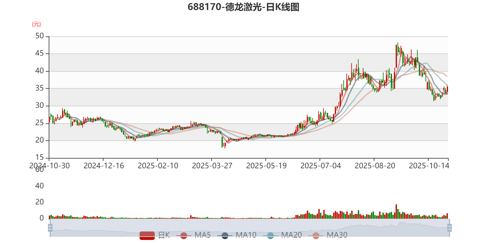 中证智能财讯德龙激光(688170)10月30日披露2025年第三季度报告。前三季度公司实现营业总收入4.51亿元,同比增长8.45%;归母净利润亏损1686.18万元,上年同期亏损2134.51万元;扣非净利润亏损3087.31万元,上年同期亏损3272.64万元;经营活动产生的现金流量净额为833.83万元,上年同期为-7990.95万元;报告期内,德龙激光基本每股收益为-0.16元,加权平均净资产收益率为-1.38%。
