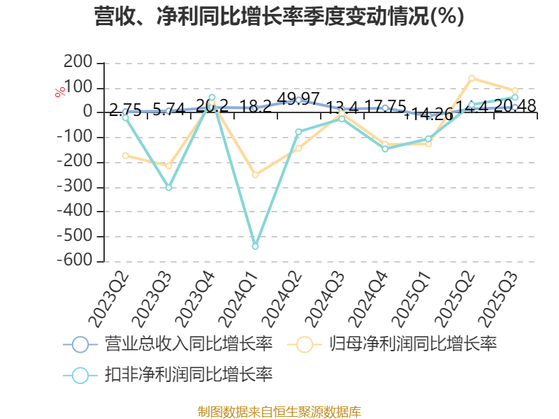 资产重大变化方面,截至2025年三季度末,公司交易性金融资产合计较上年末减少27.69%,占公司总资产比重下降3.99个百分点;存货较上年末增加13.4%,占公司总资产比重上升3.96个百分点;在建工程合计较上年末增加43.34%,占公司总资产比重上升3.39个百分点;货币资金较上年末减少18.91%,占公司总资产比重下降2.4个百分点。