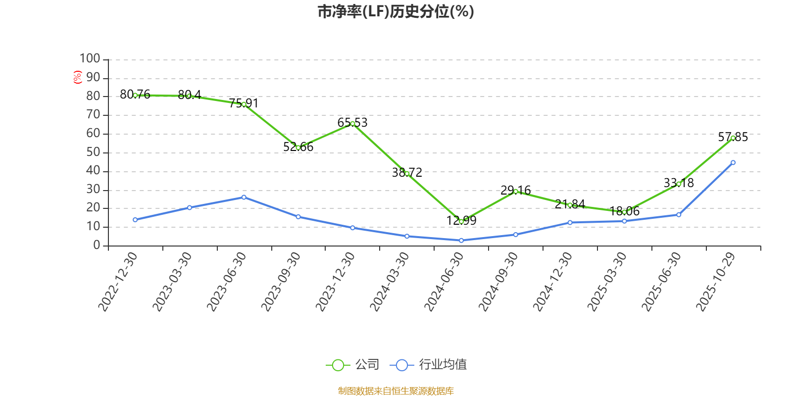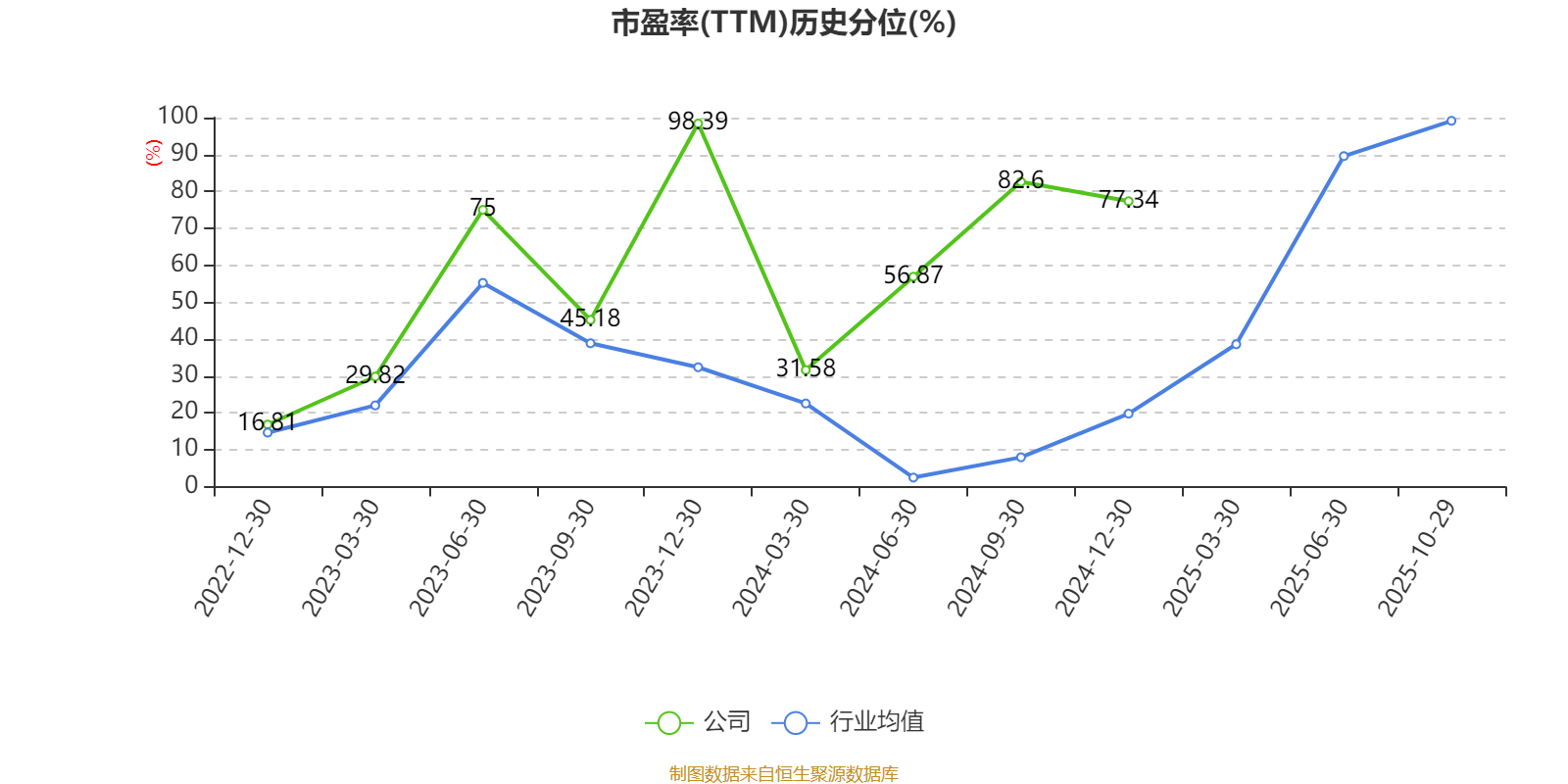 市盈率、市净率为负时,不显示当期分位数,会导致折线图中断。