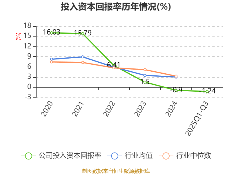 盈利能力方面, 2025年前三季度公司加权平均净资产收益率为-1.38%,同比上升0.29个百分点。公司2025年前三季度投入资本回报率为-1.24%,较上年同期上升0.73个百分点。