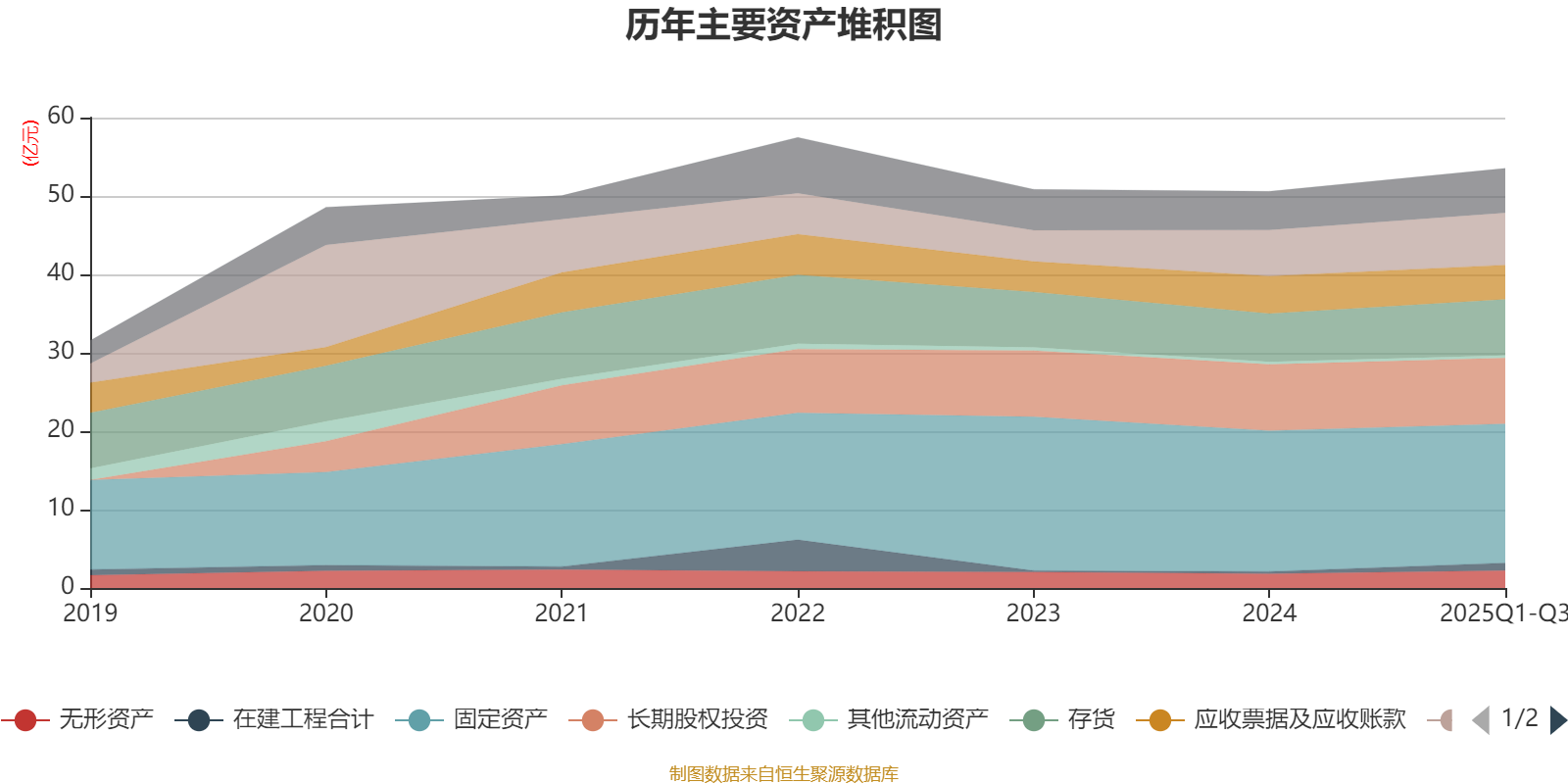 资产重大变化方面,截至2025年三季度末,公司固定资产较上年末减少1.25%,占公司总资产比重下降2.37个百分点;交易性金融资产合计较上年末增加143.37%,占公司总资产比重上升2.14个百分点;应收票据及应收账款较上年末减少8.68%,占公司总资产比重下降1.3个百分点;在建工程合计较上年末增加259.66%,占公司总资产比重上升1.28个百分点。