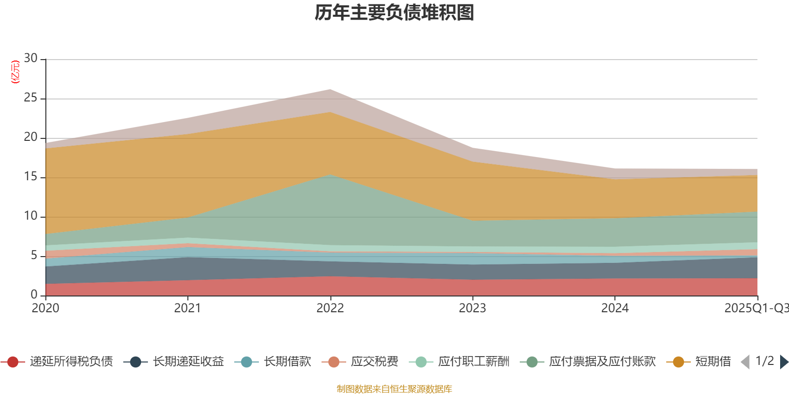负债重大变化方面,截至2025年三季度末,公司一年内到期的非流动负债较上年末减少95.05%,占公司总资产比重下降1.45个百分点;长期借款较上年末减少73.71%,占公司总资产比重下降1.32个百分点;短期借款较上年末减少5.92%,占公司总资产比重下降1.08个百分点;长期递延收益较上年末增加34.32%,占公司总资产比重上升1.05个百分点。