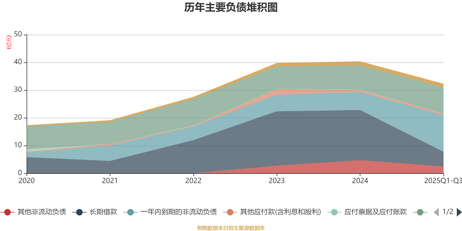负债重大变化方面,截至2025年三季度末,公司长期借款较上年末减少70.59%,占公司总资产比重下降13.33个百分点;一年内到期的非流动负债较上年末增加100.42%,占公司总资产比重上升8.12个百分点;其他非流动负债较上年末减少48.6%,占公司总资产比重下降2.28个百分点;短期借款较上年末增加8.94%,占公司总资产比重上升1.6个百分点。