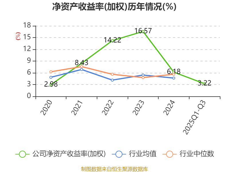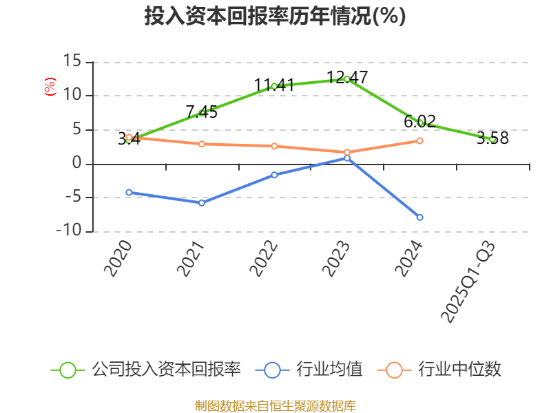 盈利能力方面, 2025年前三季度公司加权平均净资产收益率为3.22%,同比下降6.13个百分点。公司2025年前三季度投入资本回报率为3.58%,较上年同期下降3.87个百分点。