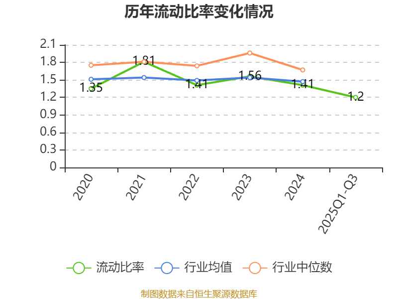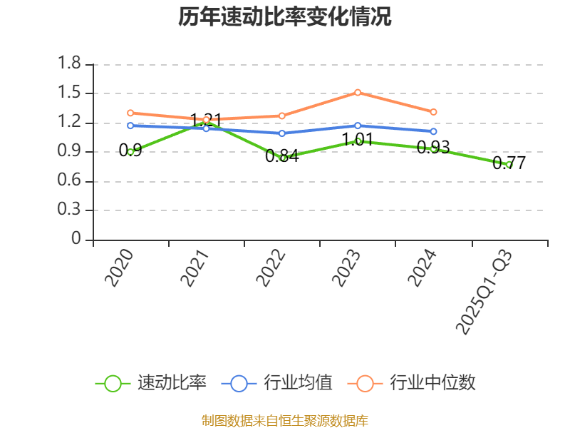 2025年前三季度,公司流动比率为1.2,速动比率为0.77。