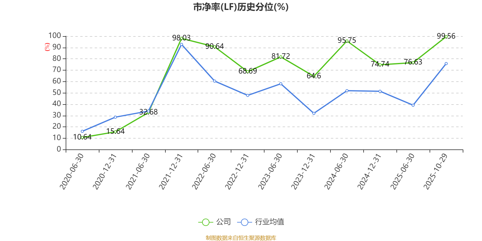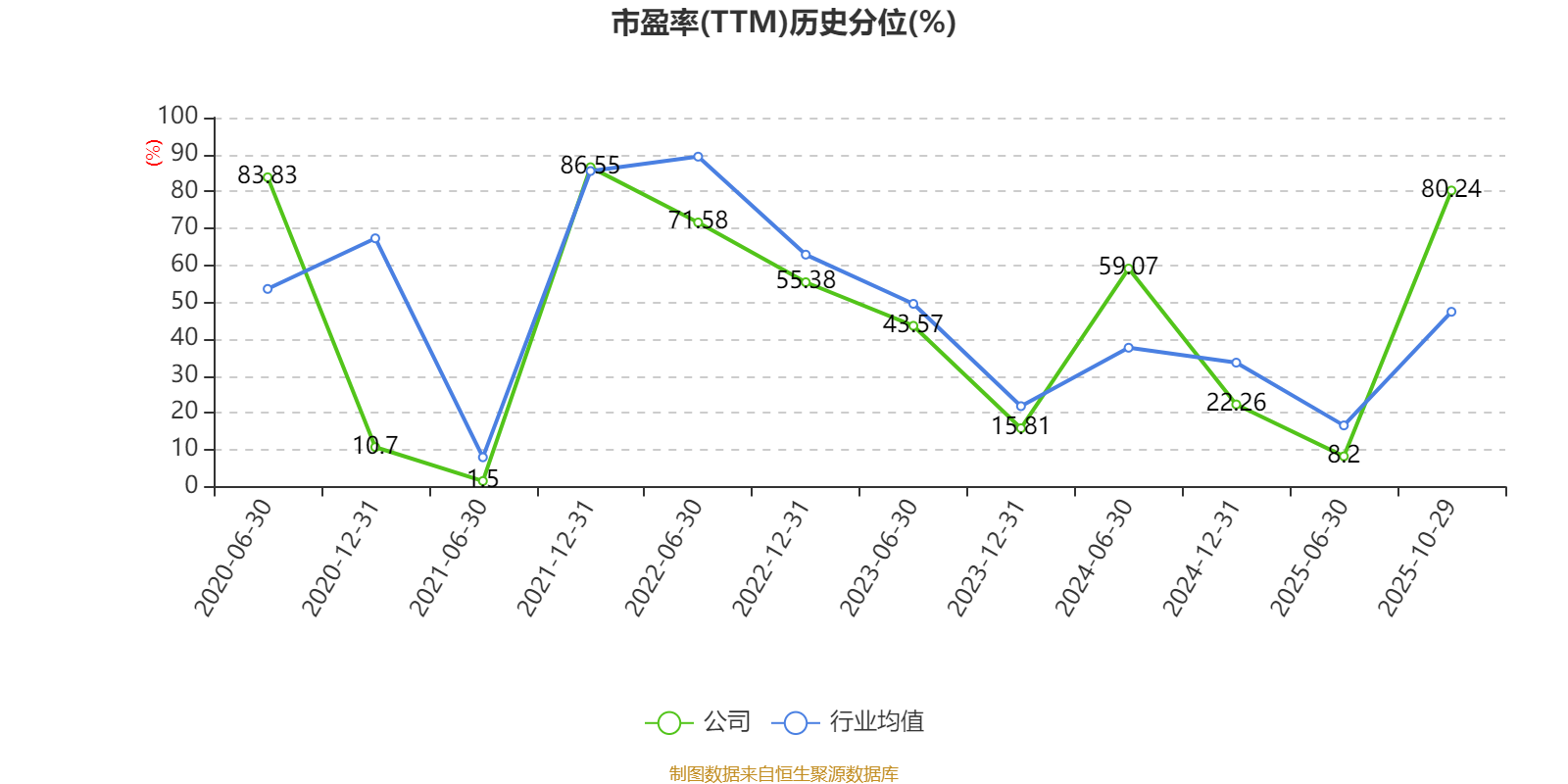 市盈率、市净率为负时,不显示当期分位数,会导致折线图中断。