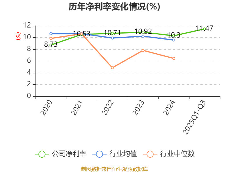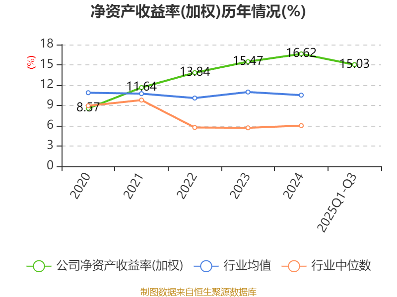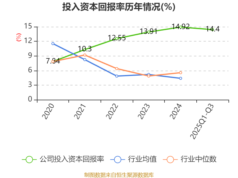 盈利能力方面, 2025年前三季度公司加权平均净资产收益率为15.03%,同比上升0.85个百分点。公司2025年前三季度投入资本回报率为14.4%,较上年同期上升1.35个百分点。