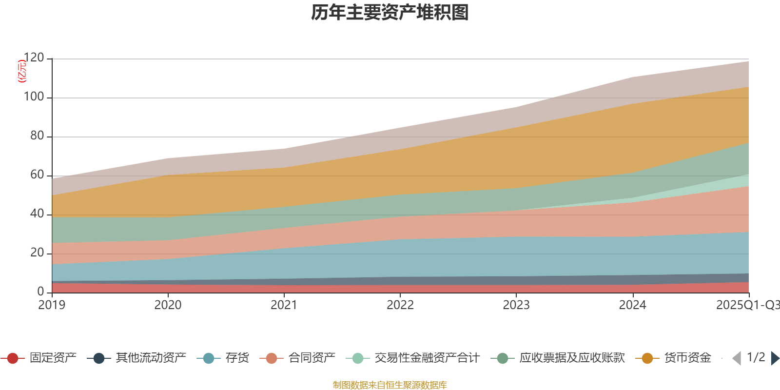 资产重大变化方面,截至2025年三季度末,公司货币资金较上年末减少18.79%,占公司总资产比重下降7.78个百分点;合同资产较上年末增加33.59%,占公司总资产比重上升3.9个百分点;交易性金融资产合计较上年末增加153.95%,占公司总资产比重上升2.97个百分点;应收票据及应收账款较上年末增加25.17%,占公司总资产比重上升1.94个百分点。