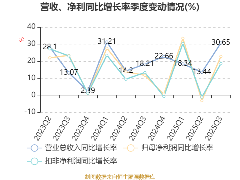 负债重大变化方面,截至2025年三季度末,公司应付票据及应付账款较上年末增加27.14%,占公司总资产比重上升6.07个百分点;合同负债较上年末减少18.61%,占公司总资产比重下降3.68个百分点;应付职工薪酬较上年末减少14.86%,占公司总资产比重下降0.61个百分点;其他应付款(含利息和股利)较上年末减少14.21%,占公司总资产比重下降0.36个百分点。