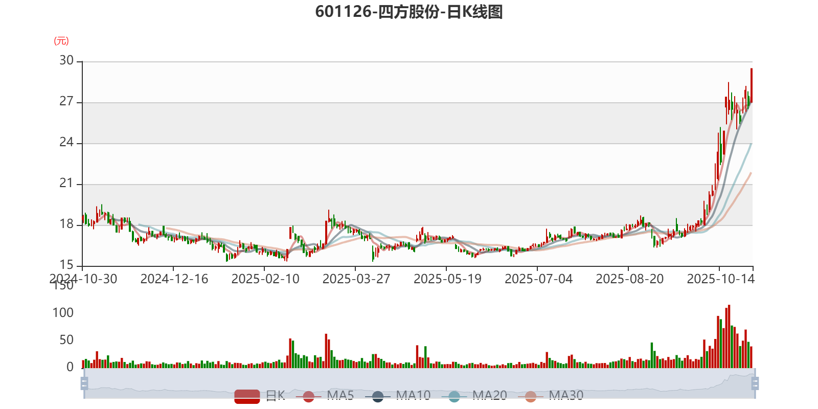 以10月29日收盘价计算,四方股份目前市盈率(TTM)约为30.29倍,市净率(LF)约5.19倍,市销率(TTM)约3.07倍。