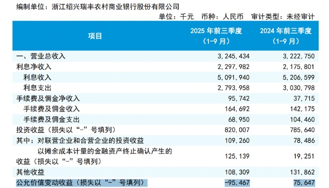 瑞丰银行三季度息差环比回升 公允价值变动收益同比降235%