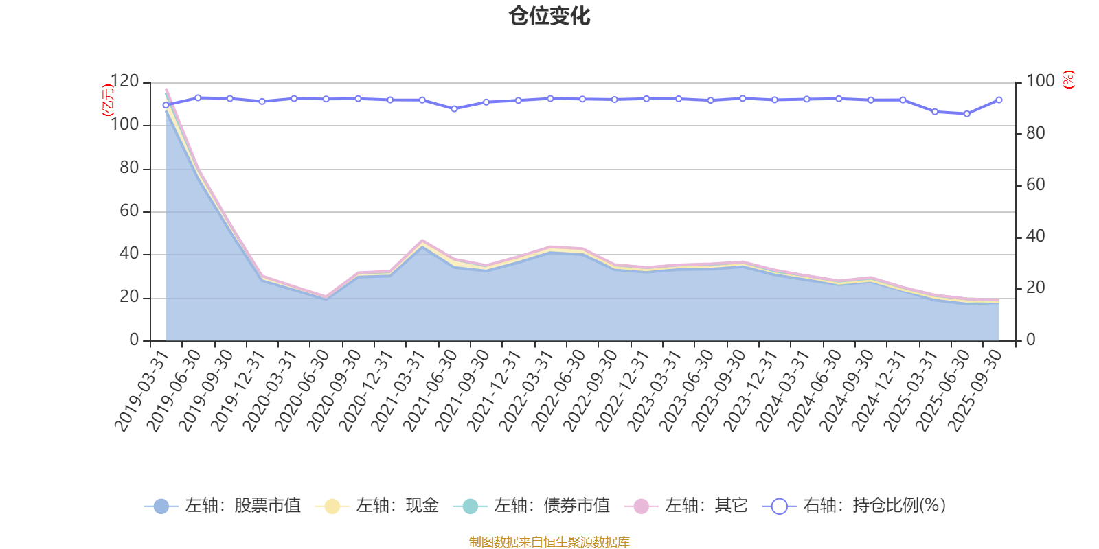 据定期报告数据统计,近三年平均股票仓位为92.56%,同类平均为87.62%。2019年上半年末基金达到94.04%的最高仓位,2025年上半年末最低,为87.84%。