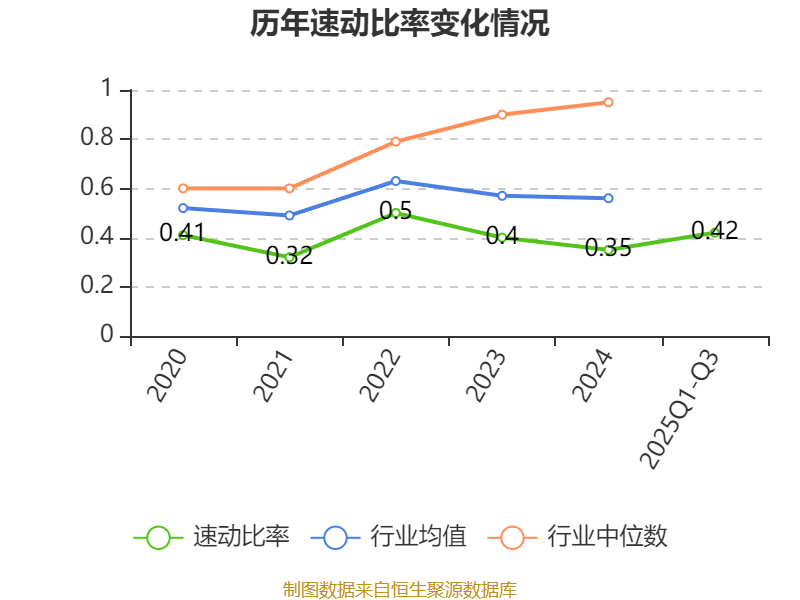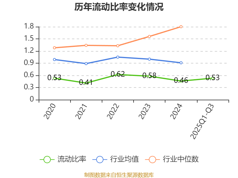 2025年前三季度,公司流动比率为0.53,速动比率为0.42。