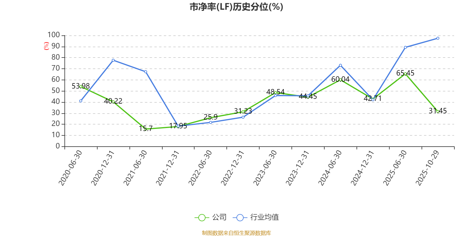 以10月29日收盘价计算,山东黄金目前市盈率(TTM)约为35.06倍,市净率(LF)约3.82倍,市销率(TTM)约1.71倍。