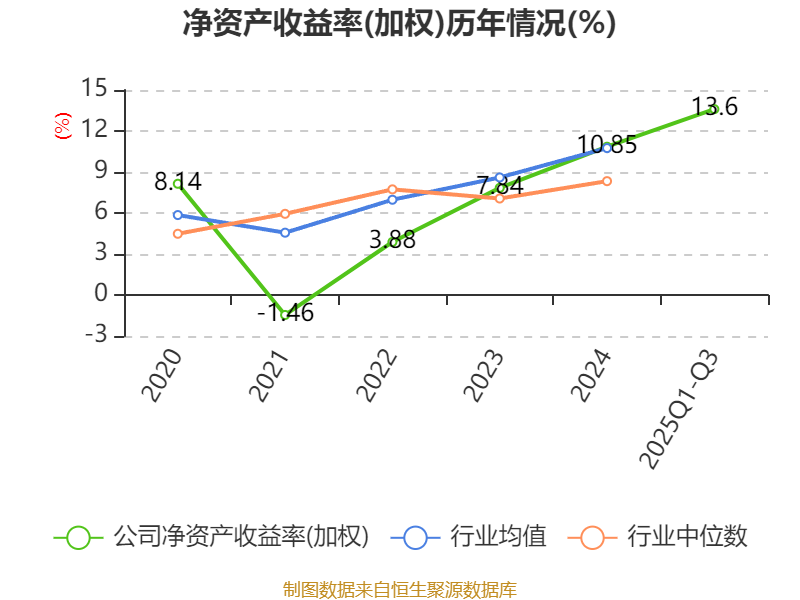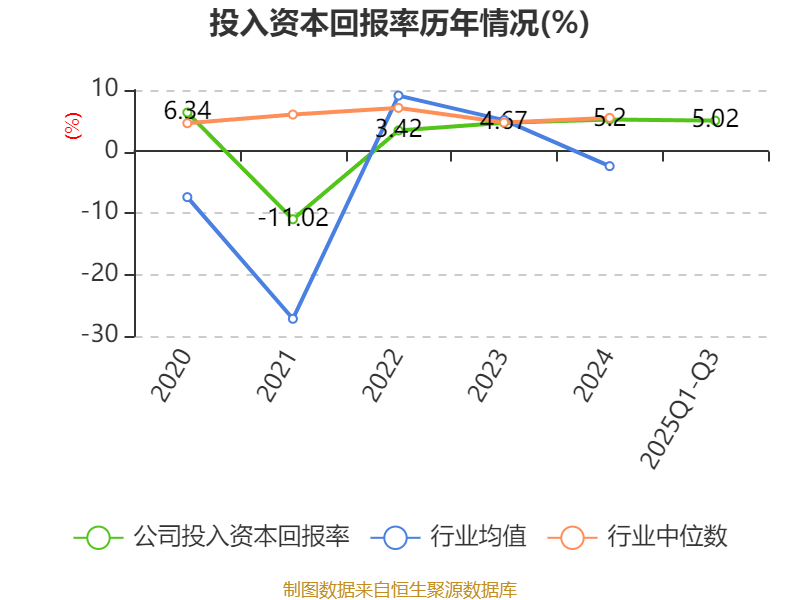 盈利能力方面, 2025年前三季度公司加权平均净资产收益率为13.6%,同比上升6.18个百分点。公司2025年前三季度投入资本回报率为5.02%,较上年同期上升1.2个百分点。
