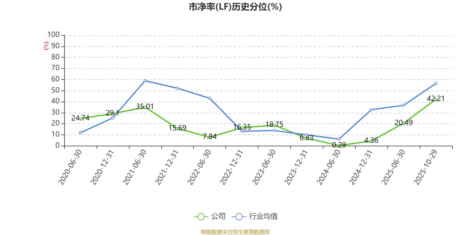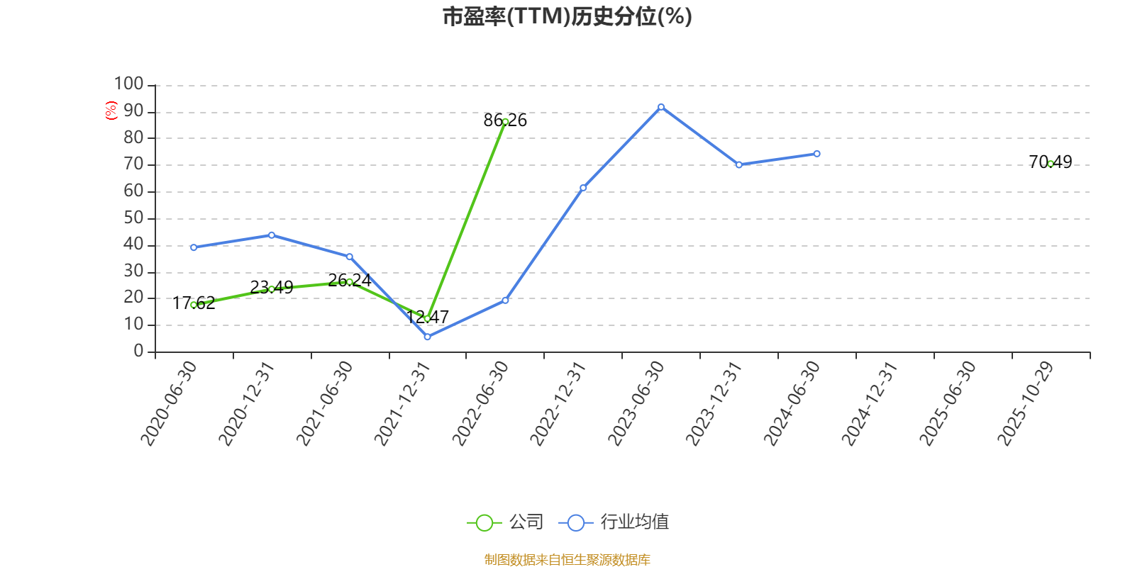 市盈率、市净率为负时,不显示当期分位数,会导致折线图中断。