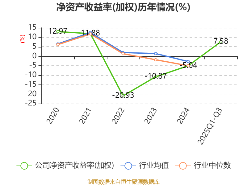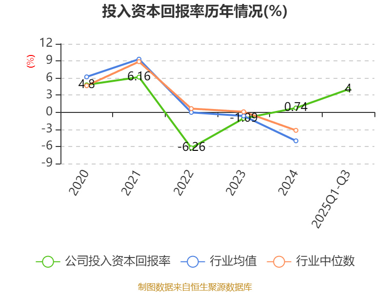 盈利能力方面, 2025年前三季度公司加权平均净资产收益率为7.58%,同比上升11.13个百分点。公司2025年前三季度投入资本回报率为4%,较上年同期上升3.61个百分点。