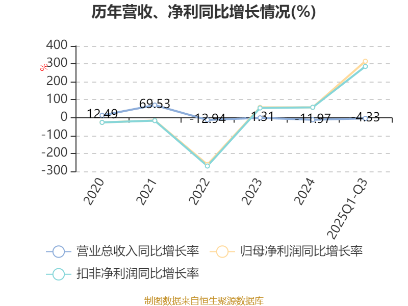 资产重大变化方面,截至2025年三季度末,公司固定资产较上年末增加3.94%,占公司总资产比重上升3.62个百分点;在建工程合计较上年末减少36.93%,占公司总资产比重下降3.09个百分点;货币资金较上年末减少19.09%,占公司总资产比重下降1.42个百分点;应收款项融资较上年末增加171.42%,占公司总资产比重上升1.32个百分点。