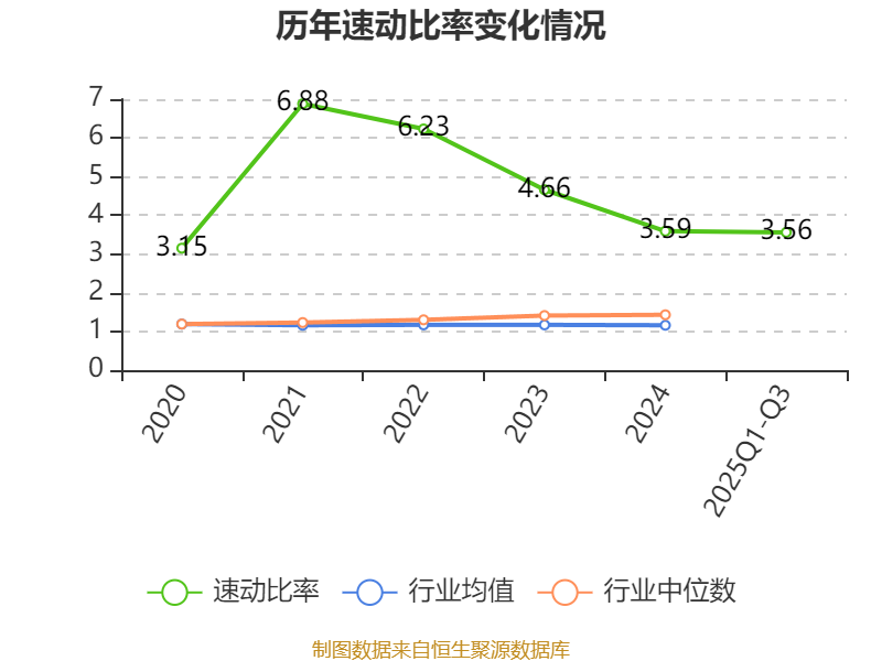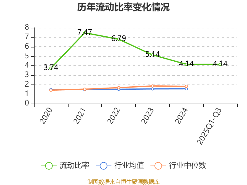 2025年前三季度,公司流动比率为4.14,速动比率为3.56。