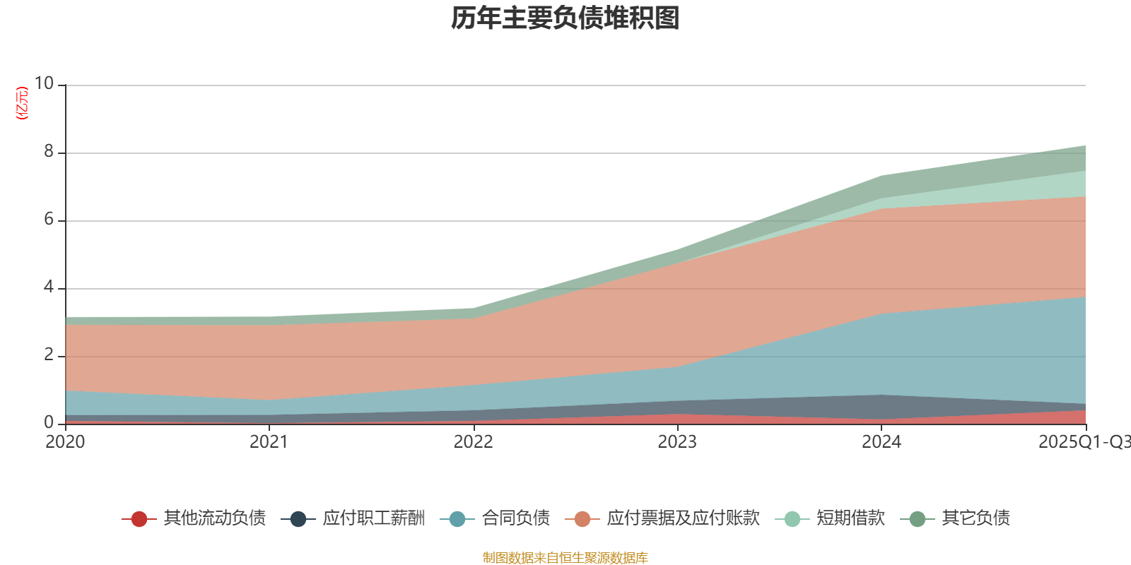 负债重大变化方面,截至2025年三季度末,公司应付职工薪酬较上年末减少73.4%,占公司总资产比重下降1.66个百分点;合同负债较上年末增加31.77%,占公司总资产比重上升1.37个百分点;应付票据及应付账款较上年末减少4.4%,占公司总资产比重下降1.27个百分点;短期借款较上年末增加148.11%,占公司总资产比重上升1.14个百分点。