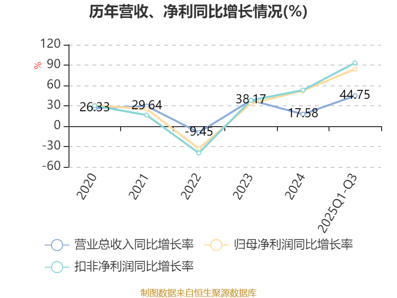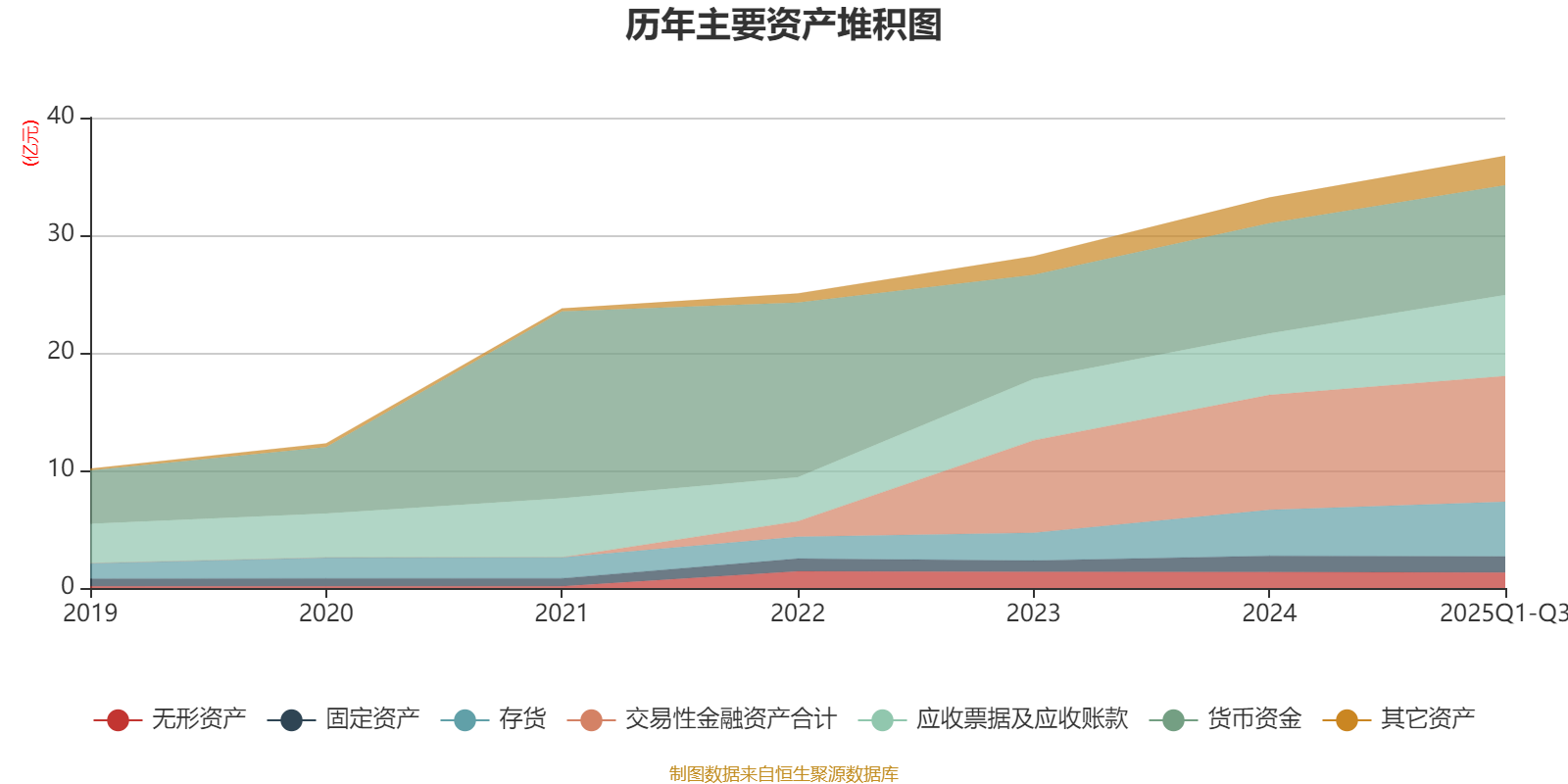 资产重大变化方面,截至2025年三季度末,公司应收票据及应收账款较上年末增加31.71%,占公司总资产比重上升2.99个百分点;货币资金较上年末减少0.42%,占公司总资产比重下降2.83个百分点;存货较上年末增加18.88%,占公司总资产比重上升0.87个百分点;应收款项融资较上年末增加101.58%,占公司总资产比重上升0.79个百分点。