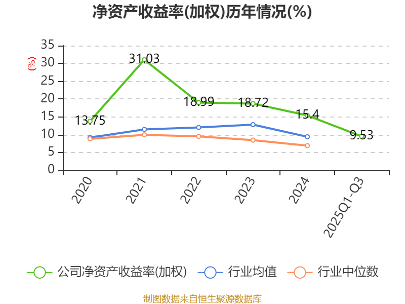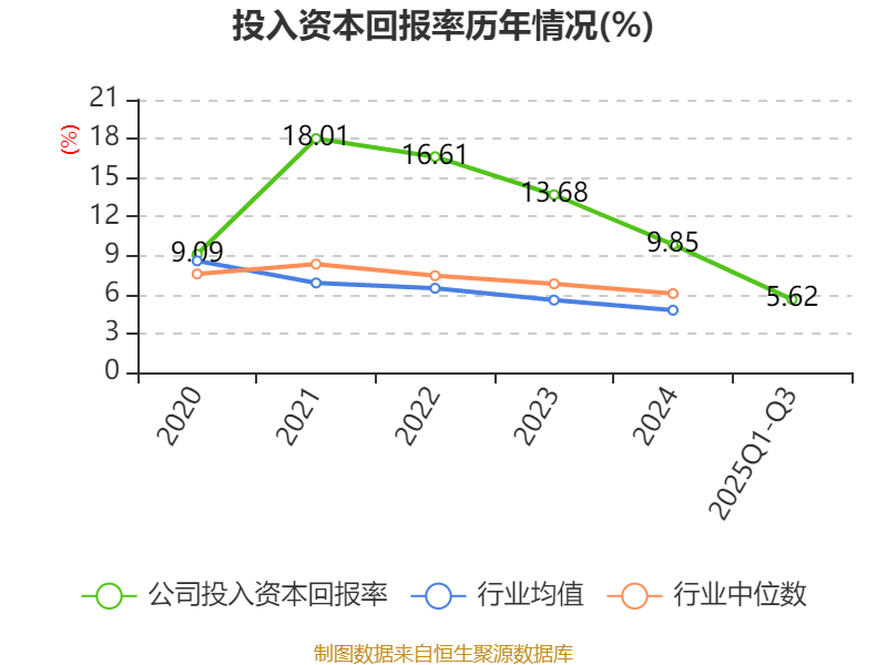 盈利能力方面, 2025年前三季度公司加权平均净资产收益率为9.53%,同比下降2.08个百分点。公司2025年前三季度投入资本回报率为5.62%,较上年同期下降1.98个百分点。