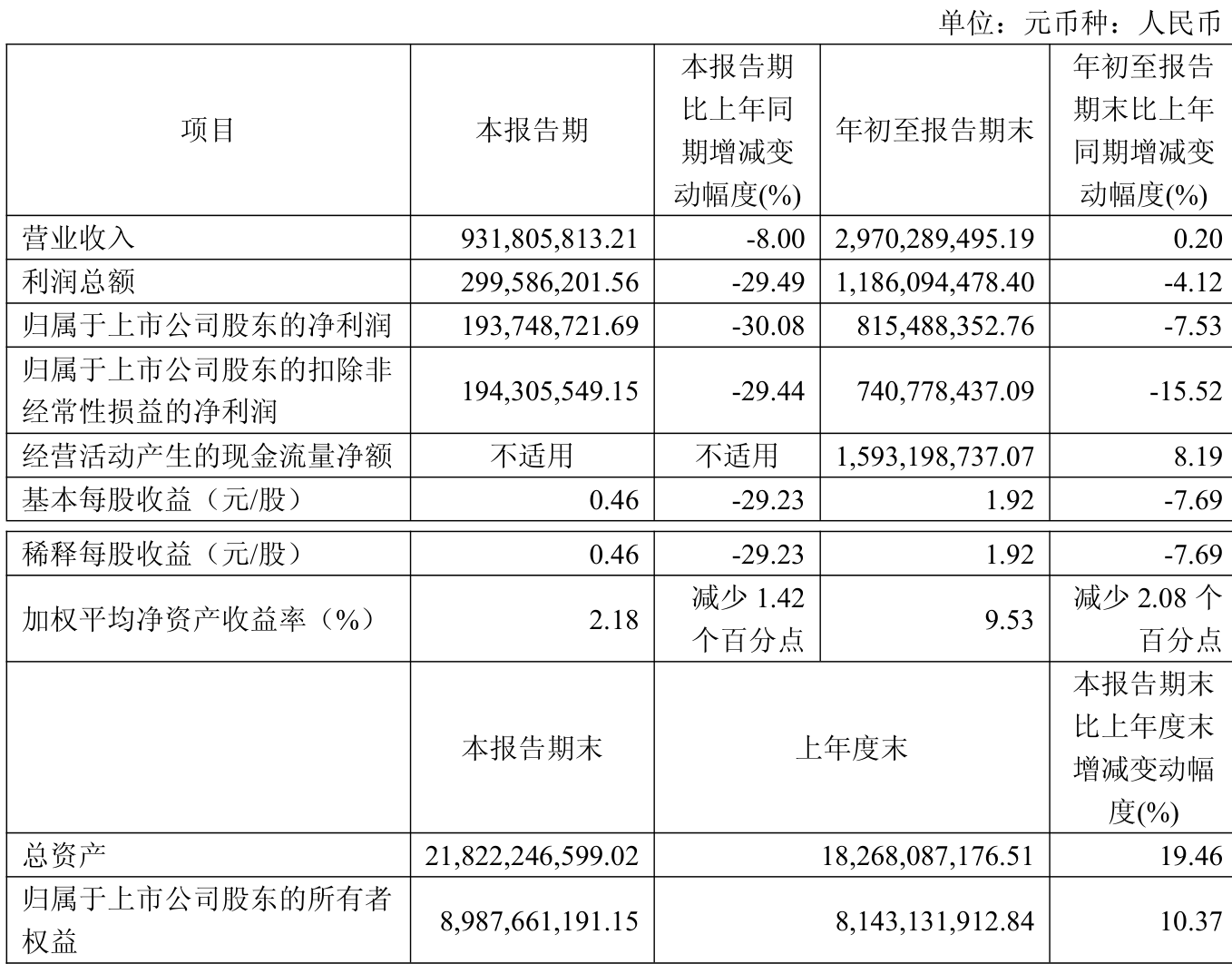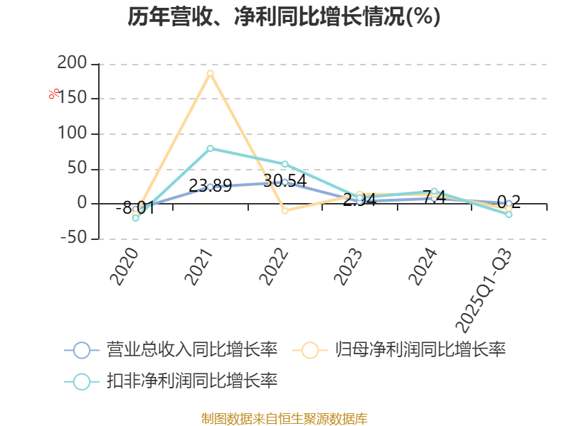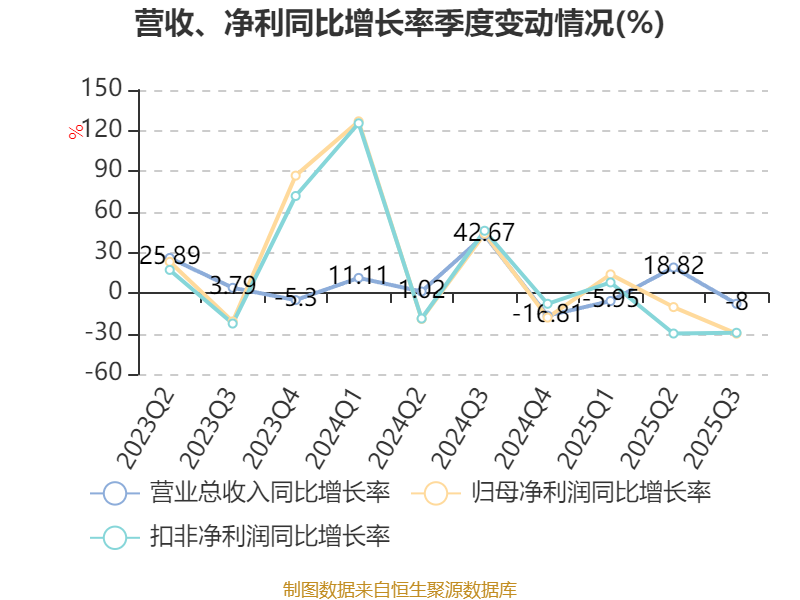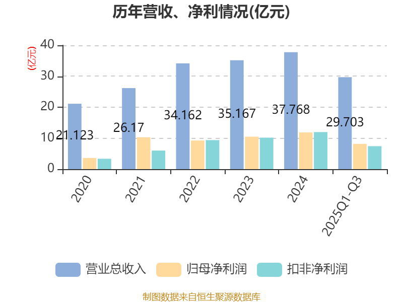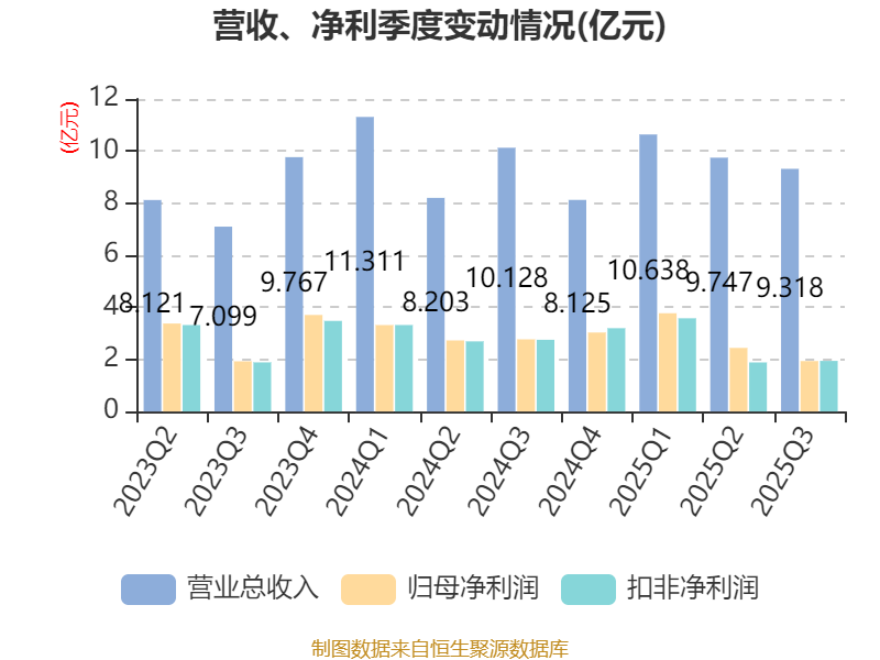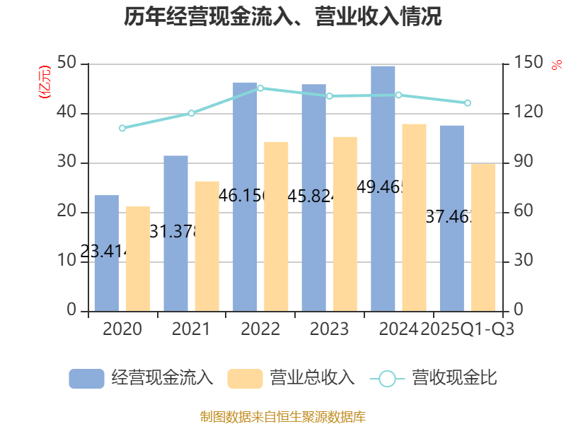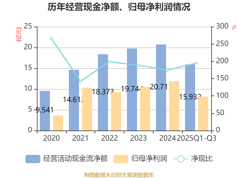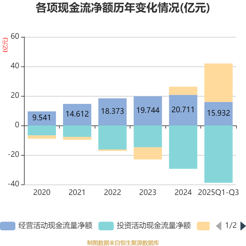 2025年前三季度,公司经营活动现金流净额为15.93亿元,同比增长8.19%;筹资活动现金流净额26.06亿元,同比增加25.72亿元;投资活动现金流净额-38.83亿元,上年同期为-13.05亿元。