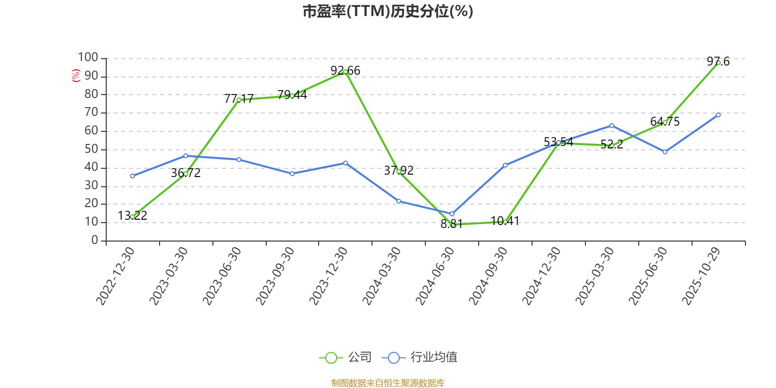 市盈率、市净率为负时,不显示当期分位数,会导致折线图中断。