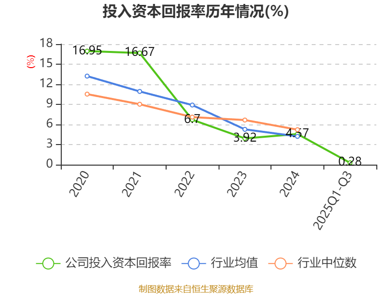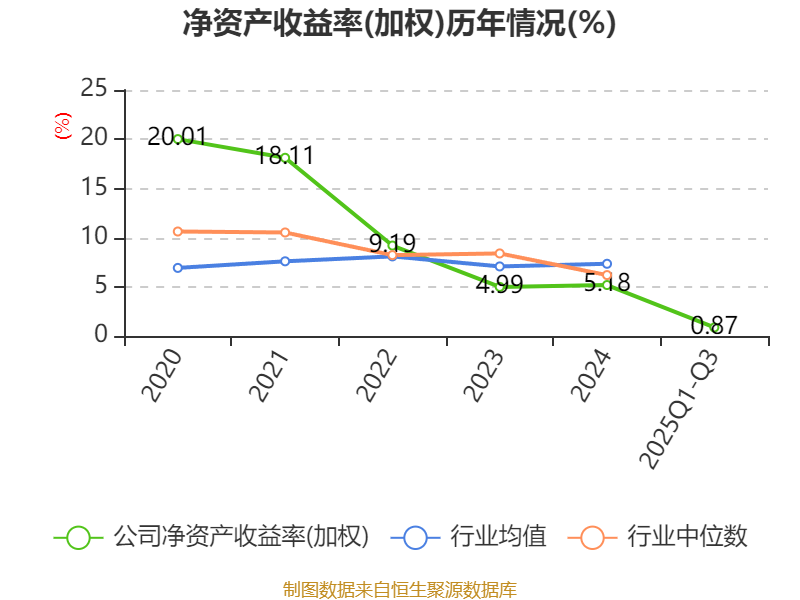 盈利能力方面, 2025年前三季度公司加权平均净资产收益率为0.87%,同比下降1.22个百分点。公司2025年前三季度投入资本回报率为0.28%,较上年同期下降1.35个百分点。