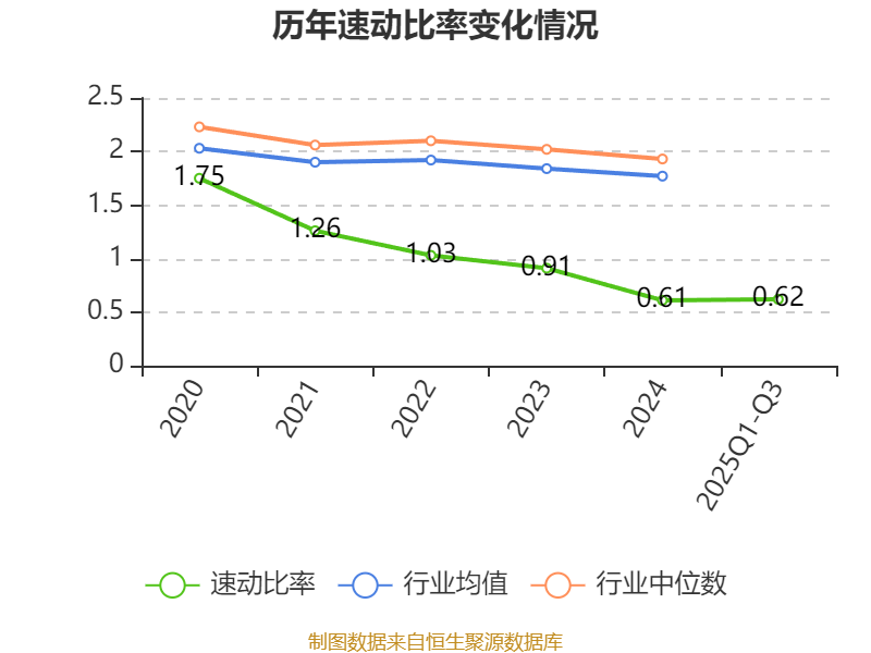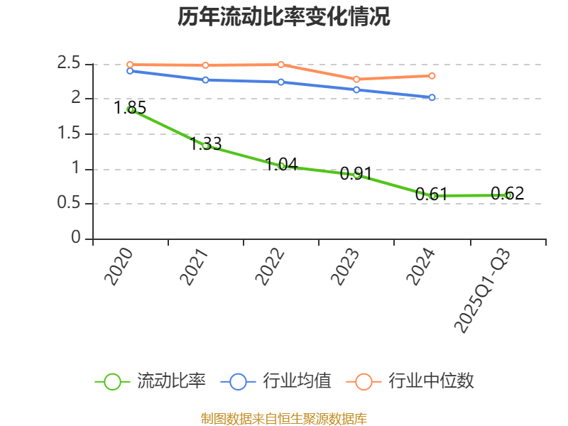2025年前三季度,公司流动比率为0.62,速动比率为0.62。