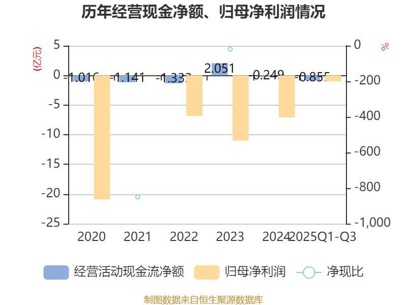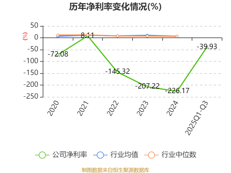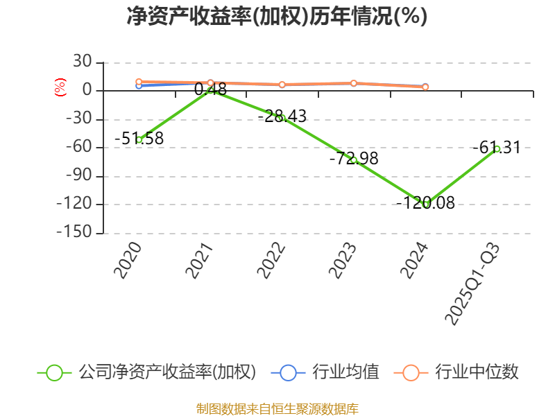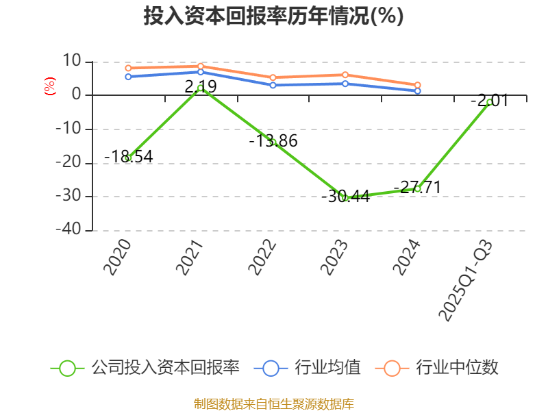 盈利能力方面, 2025年前三季度公司加权平均净资产收益率为-61.31%,同比下降49.59个百分点。公司2025年前三季度投入资本回报率为-2.01%,较上年同期下降0.56个百分点。