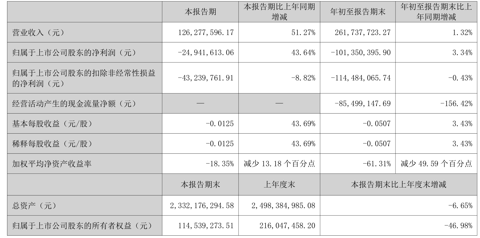 中证智能财讯 ST华闻(000793)10月30日披露2025年第三季度报告。前三季度公司实现营业总收入2.62亿元,同比增长1.32%;归母净利润亏损1.01亿元,上年同期亏损1.05亿元;扣非净利润亏损1.14亿元,上年同期亏损1.14亿元;经营活动产生的现金流量净额为-8549.91万元,上年同期为-3334.3万元;报告期内,ST华闻基本每股收益为-0.0507元,加权平均净资产收益率为-61.31%。