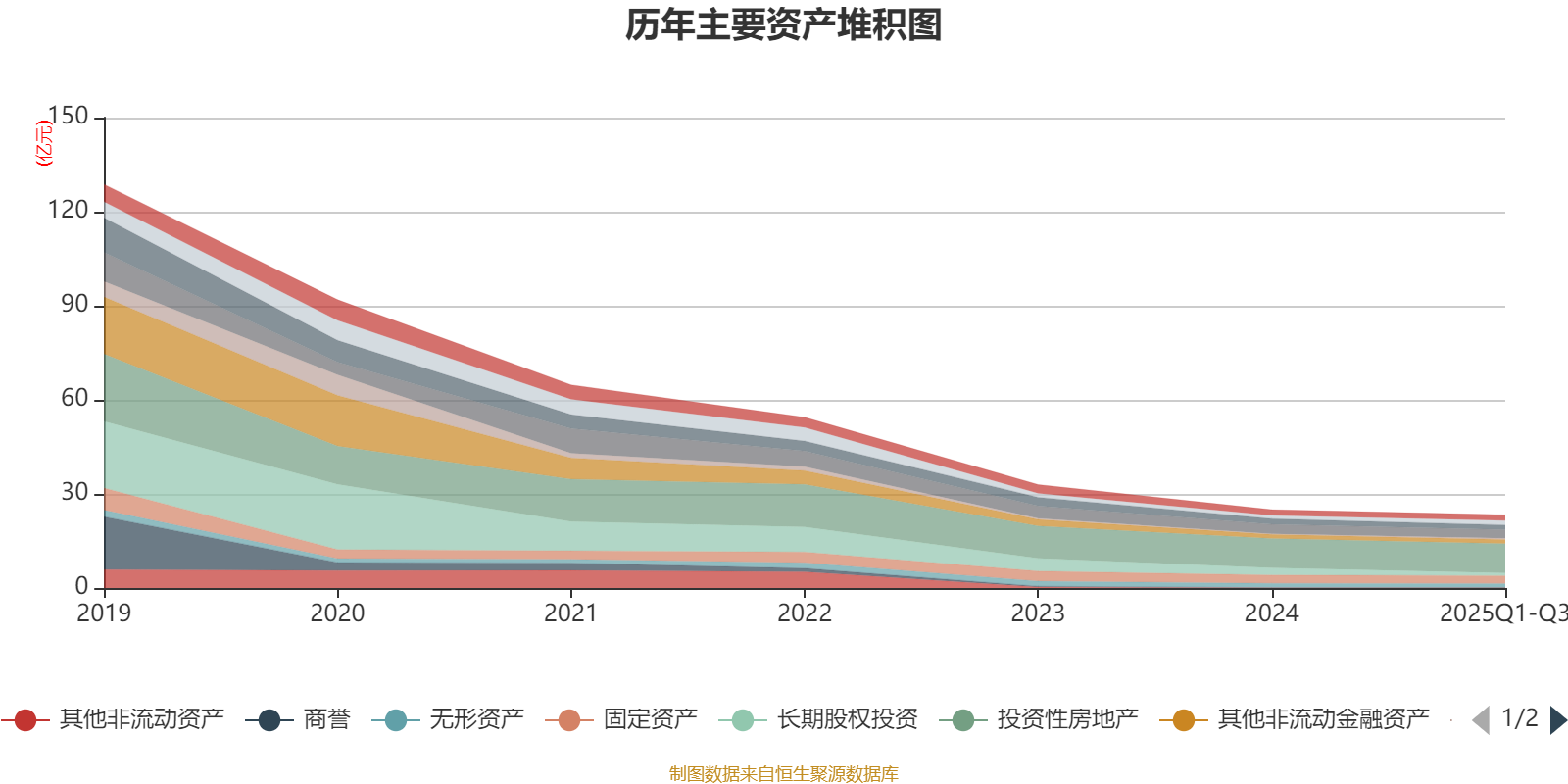 资产重大变化方面,截至2025年三季度末,公司长期股权投资较上年末减少63.42%,占公司总资产比重下降5.48个百分点;投资性房地产较上年末减少0.06%,占公司总资产比重上升2.65个百分点;货币资金较上年末增加38.94%,占公司总资产比重上升1.97个百分点;交易性金融资产合计较上年末减少25.72%,占公司总资产比重下降0.95个百分点。